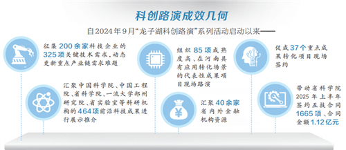 自去年9月启动以来,系列活动已累计推介来自中国科学院、中国工程院、省科学院、省实验室等单位的464项前沿科技成果;成功组织85项成熟度高、适配河南转化场景的优秀项目登台路演;精准收集325项企业技术需求;推动37项重点成果转化项目现场签约……如今,龙子湖科创路演已建成全链条、开放式、常态化的高能级转化平台,成为河南科技成果转化的超级IP”