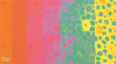 利用电子束在薄膜上“刻写”图案,研究人员添加了产生色彩效果的光学层。这些变化发生迅速,多数色彩转换耗时不到20秒,且材料进行数百次切换而性能不衰。根据皮肤接触液体的面不同,色彩与纹理还能独立改变。