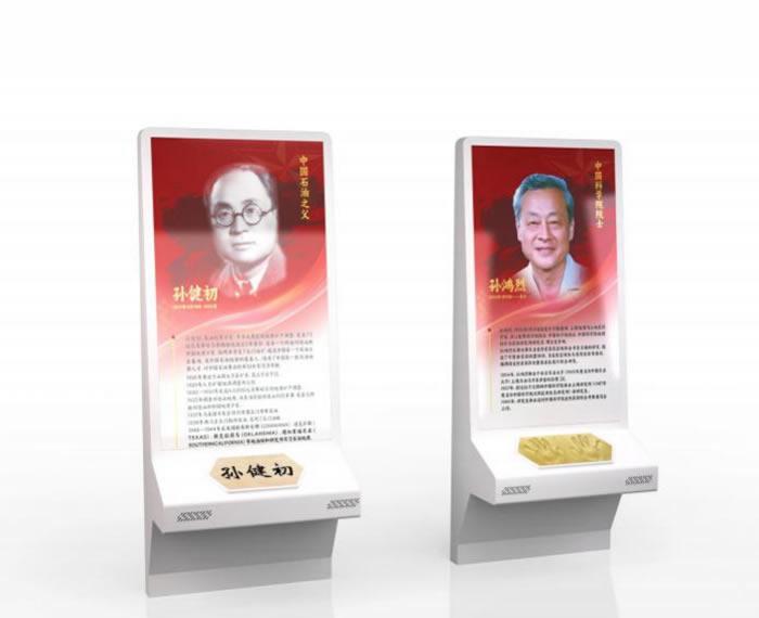 本展品展示濮阳的两位科学家 :中国石油之父——孙健初, 以及其子中国科学院院士——孙鸿烈。展品包括背景展板、简介模块、玻璃钢手模构成。科学家孙健初展示签名 ,科学家孙鸿烈展示手模。通过来自一个家庭一脉相承的科学精神 ,激励濮阳及民众不断开拓创新。