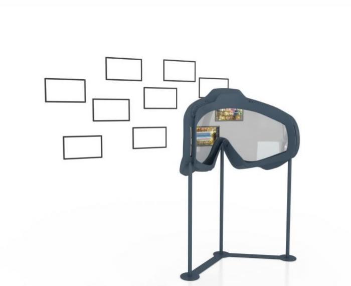 展项由墙面屏幕和一个表面贴有偏振膜的大型眼镜装置组成。 观众透过眼镜观看屏幕 ,可清晰地观看到濮阳PC产业的相关内容 ;但若脱离眼镜 ,则会发现 ,屏幕上的内容神奇地“消失了”。