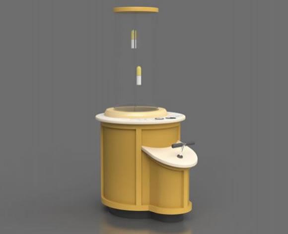 当按压打气筒时 ,箱内的气体压强增大 ,浮沉子内的空气柱受压 收缩体积减小 ,浮力减小浮沉子下沉 ,展台上设置有压力表 ,方 便观众观看桶内的压力变化。