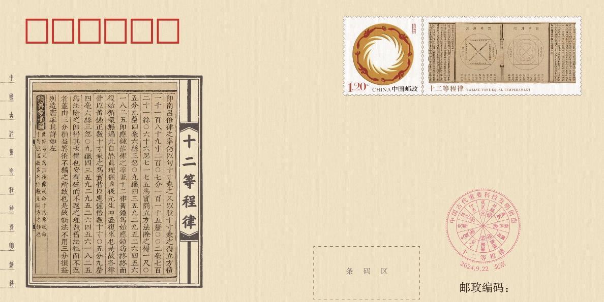 图①②: “十二等程律”纪念封及内插页。(中国集邮有限公司供图)