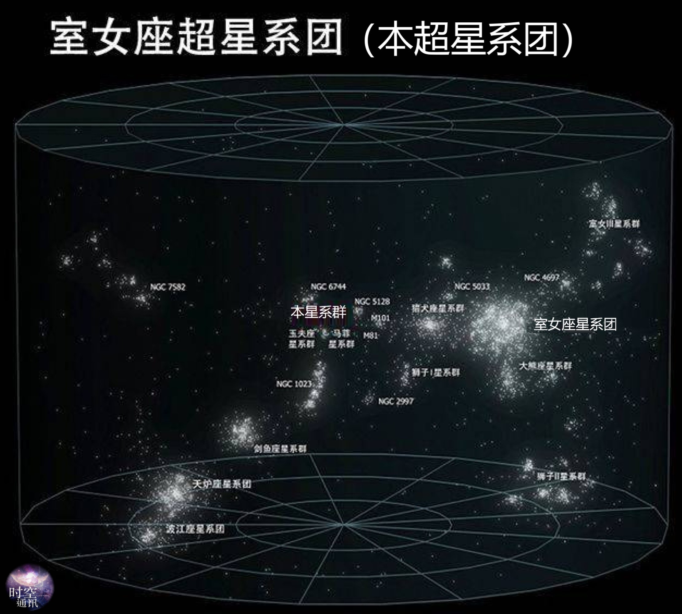 在宇宙结构中,星系群与星系团是同一层级,星系较少的星系集中结构称为星系群,星系更多的星系聚集结构为星系团。星系群、星系团被引力约束汇集成一个更大结构,就叫超星系团。
