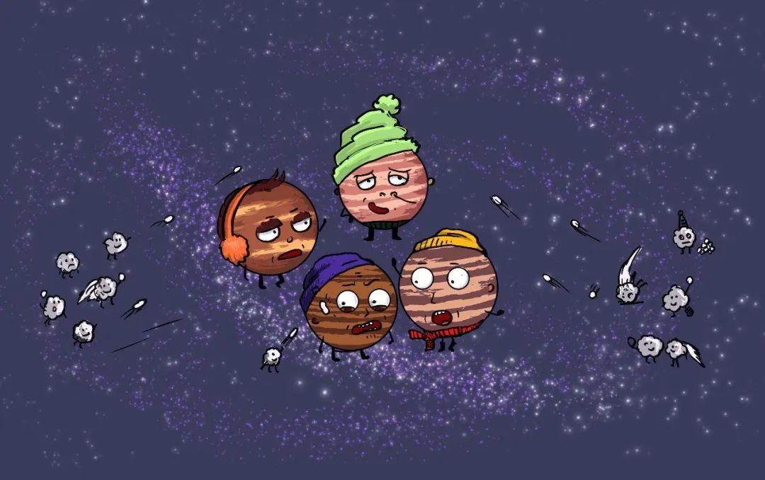 从太阳向外计算,太阳系由四个岩石行星、一个小行星带、四个气体巨星和另一个小行星带组成。内行星富含金属和硅酸盐等耐火材料,外行星富含水和甲烷等挥发性物质。在形成过程中,内行星很难收集到挥发性的大气,因为强烈的太阳风不断地将气体吹走。与此同时,来自太阳的热量蒸发了任何冰块,因此更难保持水分。