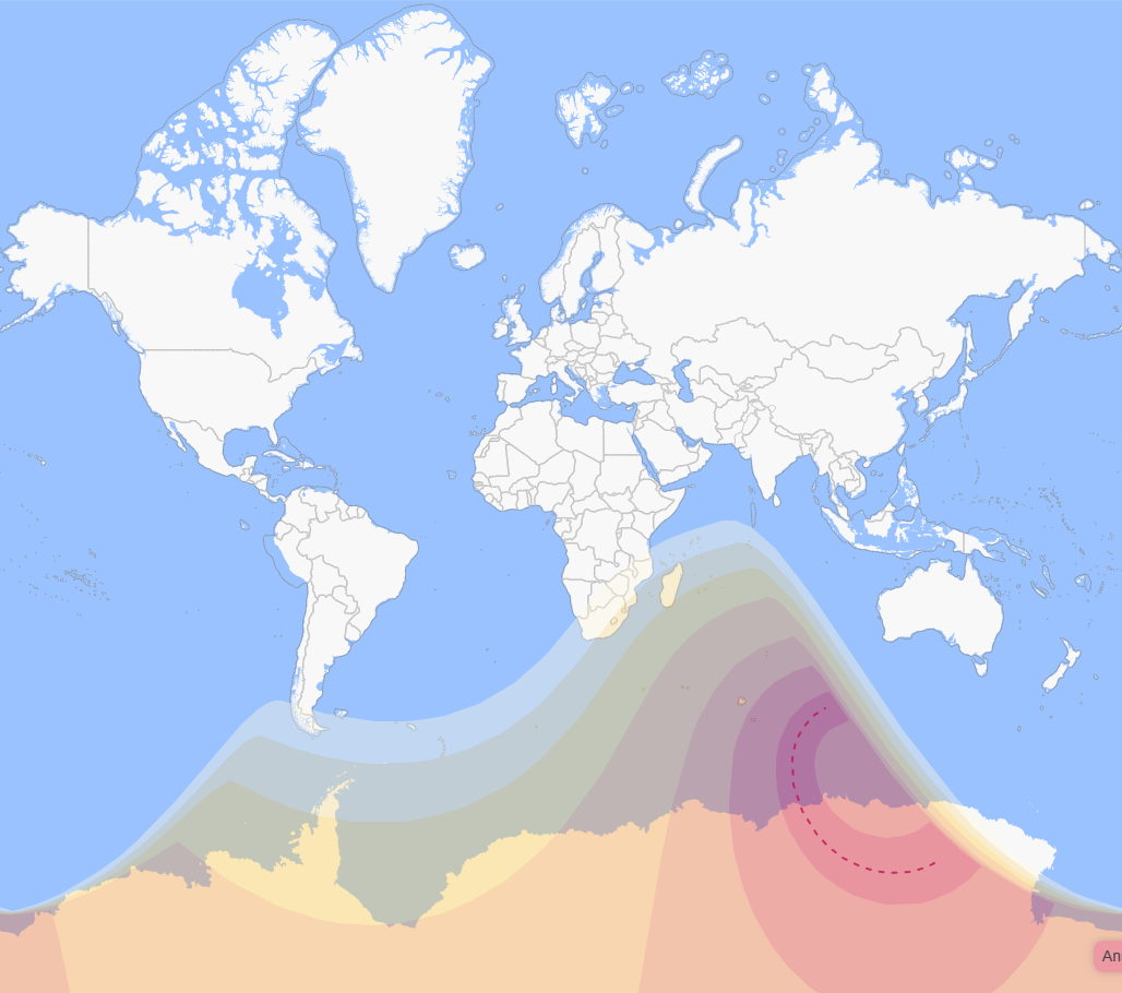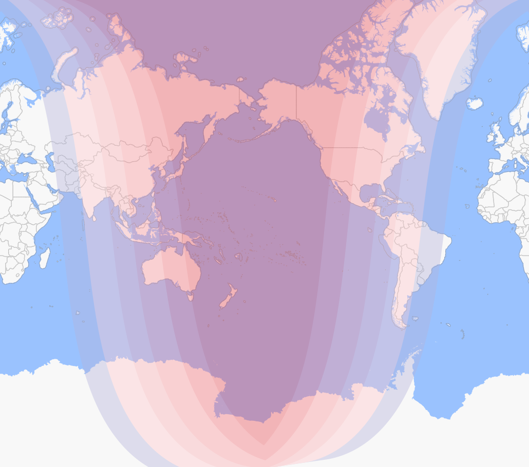 可见范围:亚洲东部、俄罗斯远东、大洋洲、北美洲西北部、南极洲局部地区