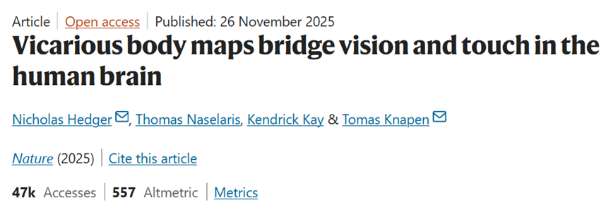 日前,一支跨国合作的科研团队发现:我们的大脑里,藏着一张“视觉-触觉共享地图”——当视觉系统在工作时,触觉系统也会被“激活”。所以,我们的每一次注视,身体里都有可能在上演无意识的“排练”。