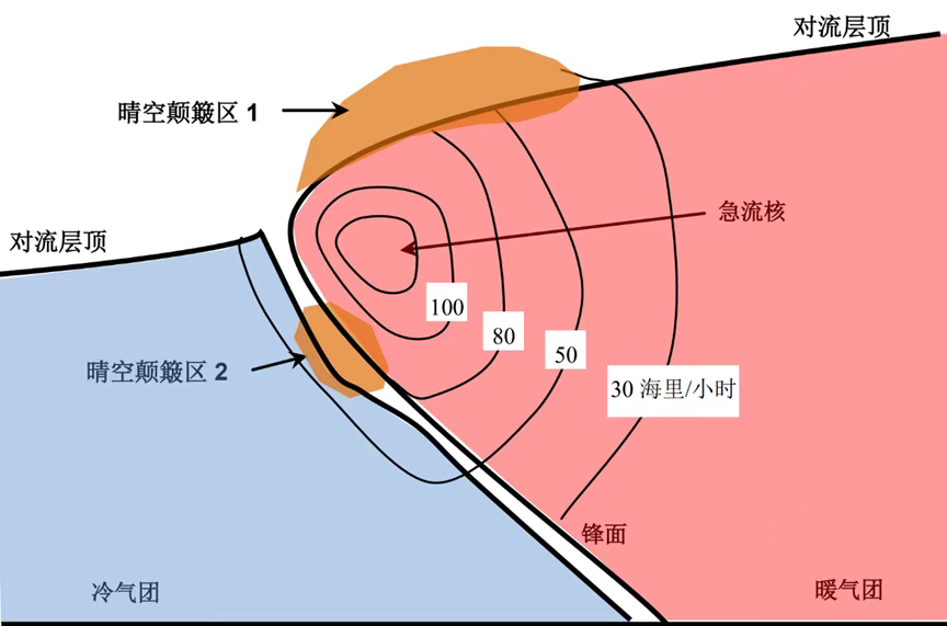 此外,飞机在穿越不同风速的风层交界时(例如锋面附近),也可能遇到风切变,导致突如其来的晃动。