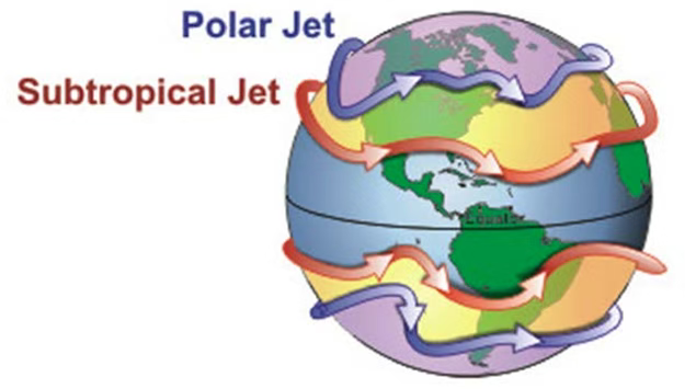 高空中常见的喷射气流:极地喷射气流、副热带喷射气流 来源:力学科普