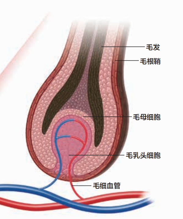 毛囊底部(毛球)的放大截面图 来源:科学世界
